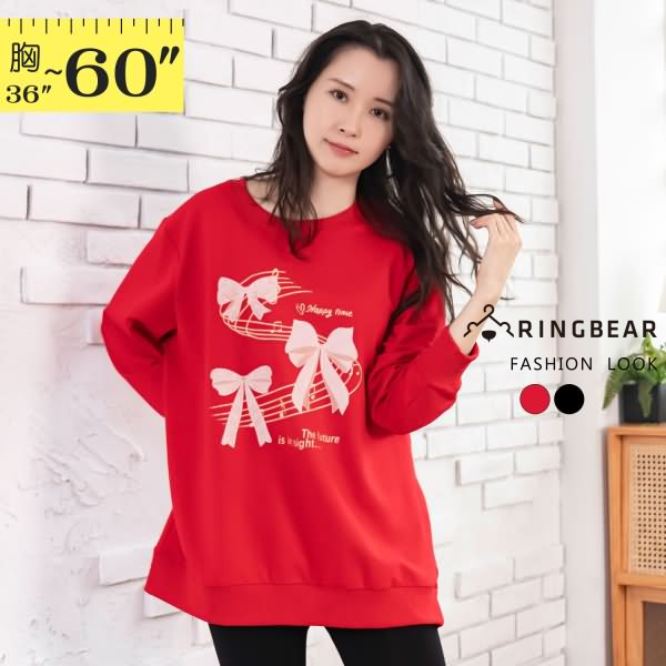【X664】歡樂時光五線譜蝴蝶結印花圓領長袖長版上衣