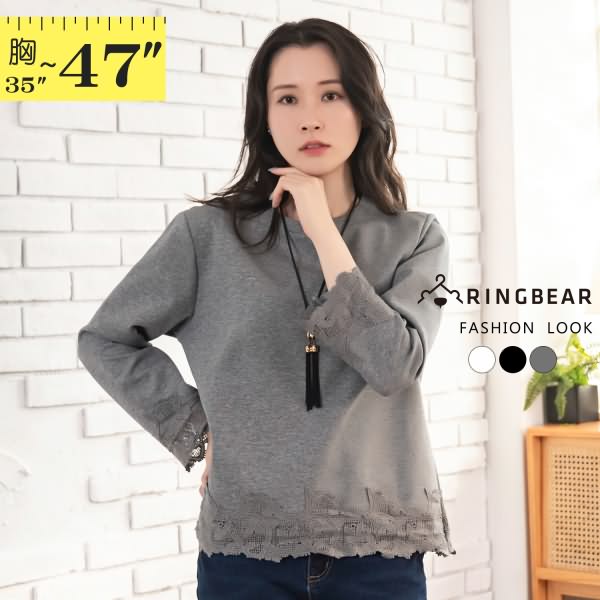 【X683】浪漫隨性時尚蕾絲拼接長袖圓領純色上衣