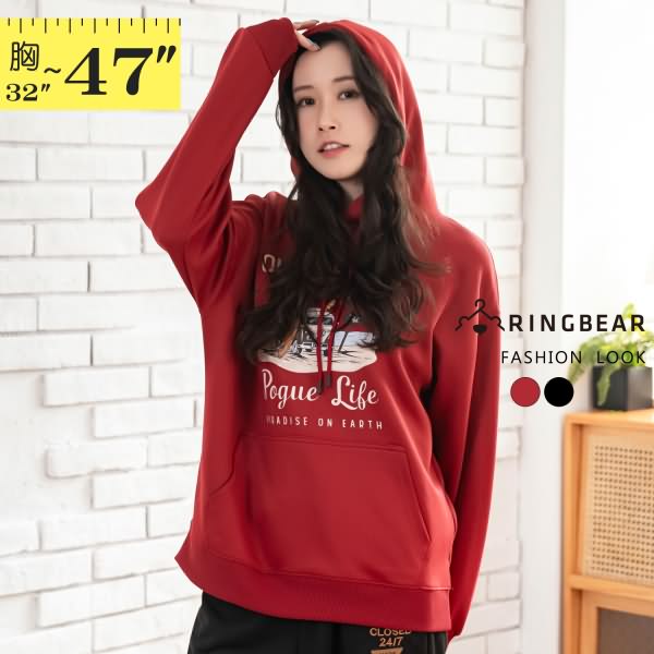 【X666】海南島渡假風印圖袋鼠口袋抽繩連帽長袖帽T