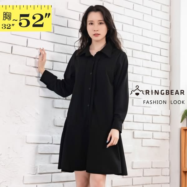 【A455】修身典雅休閒舒適翻領排釦設計A字長袖洋裝