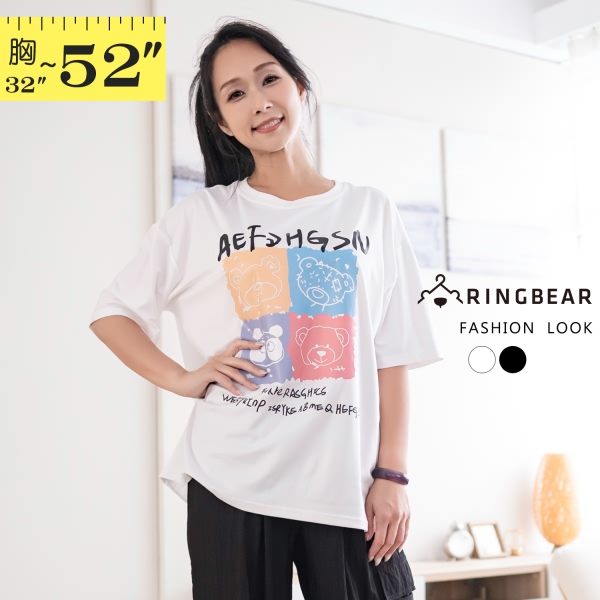 【T496】清新可愛字母小熊印圖圓領落肩短袖T恤