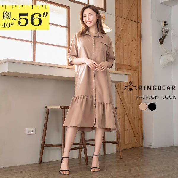 【D651】夏日慵懶風純色復古質感A字襯衫連身裙