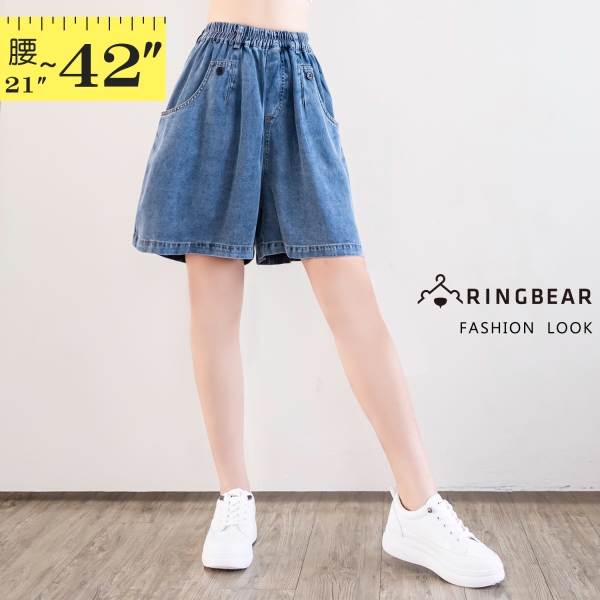 【R293】夏日百搭薄款高腰A字天絲休閒五分牛仔褲