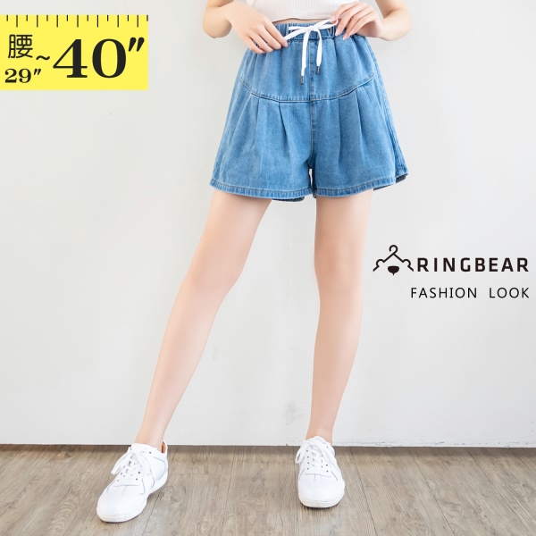 【R292】甜美俏皮鬆緊高腰抽繩綁帶圓弧拼接壓摺A字牛仔褲裙