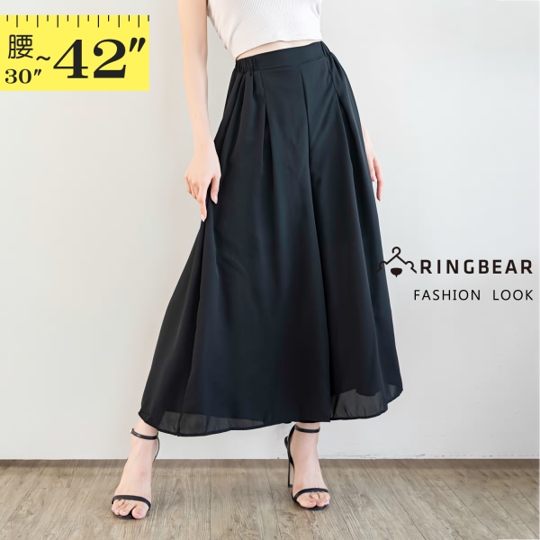 【S108】純色素雅高腰後鬆緊褲頭褲管抓褶九分褲裙