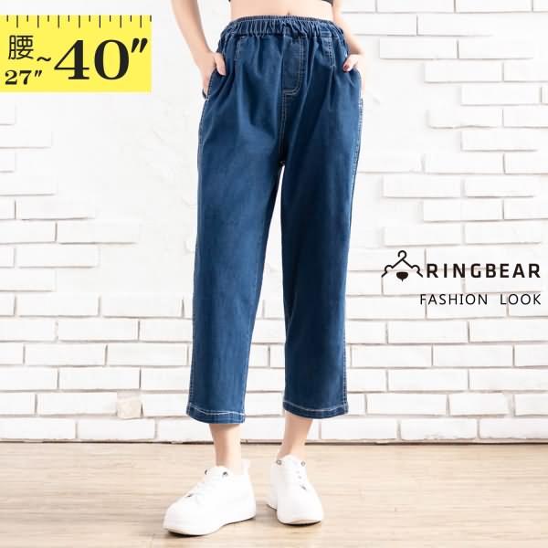 【N116】顯瘦百搭梨形身材設計高腰寬鬆牛仔九分哈倫褲