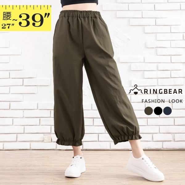 【P206】簡約質感休閒百搭鬆緊褲頭燈籠花苞褲