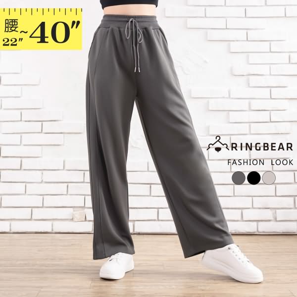 【P207】顯瘦褲管壓線擴腿寬版直筒鬆緊抽繩休閒長褲