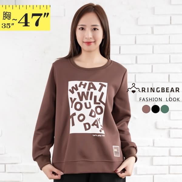 【X671】美式復古輕鬆俏皮幾何字母印圖圓領長袖上衣