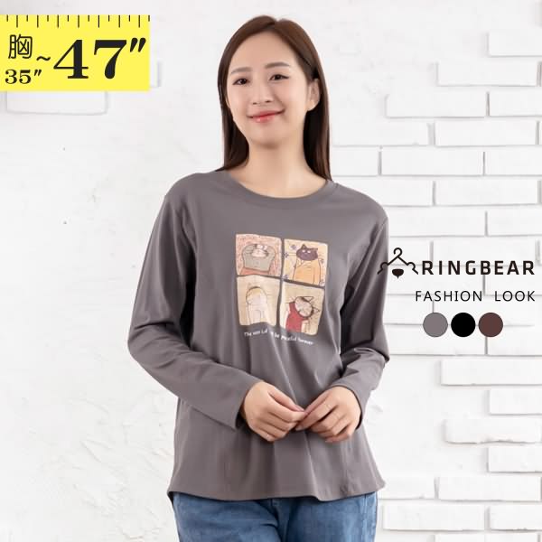 【F204】俏皮趣味萌感貓四格印圖公主線圓領長袖T恤