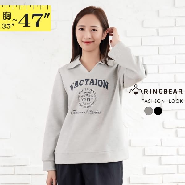【X680】清爽日常校園風假期英字印圖V字翻領長袖上衣