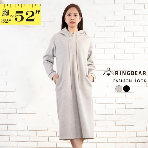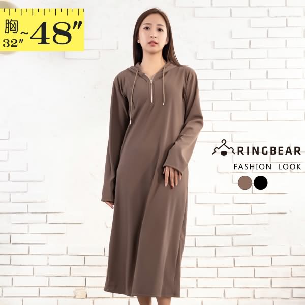 【A457】隨性自在修身坑條金屬拉鍊抽繩連帽寬鬆長袖長版洋裝