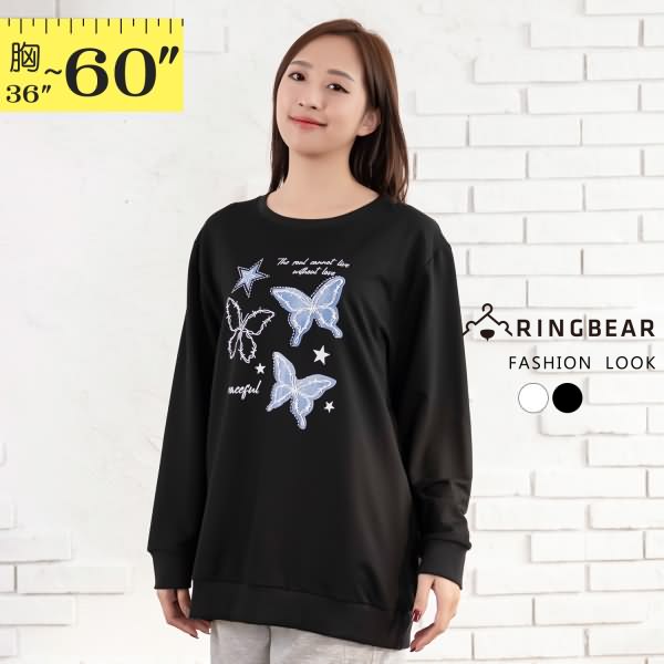 【X689】浪漫告白荊棘線條蝴蝶英字印圖圓領長袖大學T
