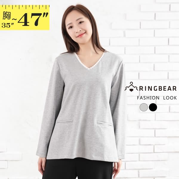 【F162】保暖舒適百搭素色加絨V領長袖T恤上衣
