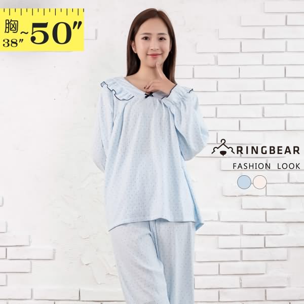 【L50】輕柔少女雲朵棉甜美V領圓點長袖兩件式家居睡衣